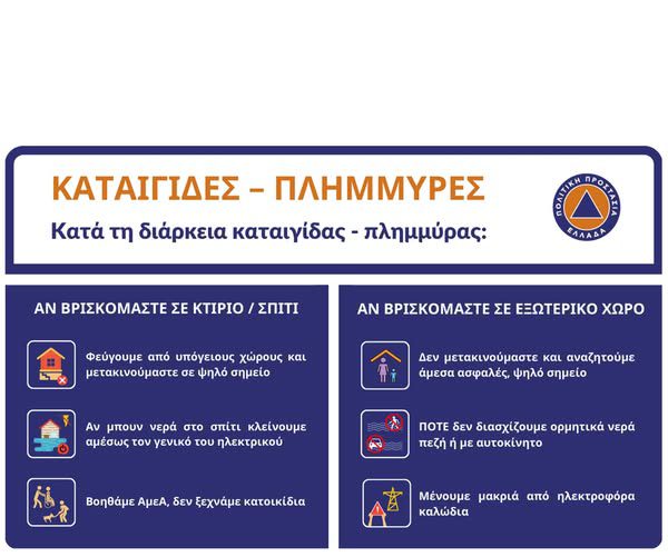 Για περισσότερες πληροφορίες και οδηγίες αυτοπροστασίας από τα έντονα καιρικά φαινόμενα, οι πολίτες μπορούν να επισκεφθούν την ιστοσελίδα της Γενικής Γραμματείας Πολιτικής Προστασίας civilprotection.gov.gr