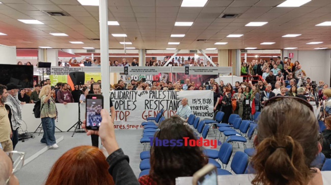 Επεισόδιο σημειώθηκε το απόγευμα του Σαββάτου στη Διεθνή Έκθεση Βιβλίου Θεσσαλονίκης, όταν ομάδα διαδηλωτών υπέρ της Παλαιστίνης εισέβαλε στον χώρο εκδήλωσης με τίτλο «Μεταβαλλόμενα τοπία της εβραϊκής λογοτεχνίας / Changing landscapes of Hebrew literature» που διεξαγόταν στην αίθουσα Cosmos (Περίπτερο 14) γύρω στις 17:00.