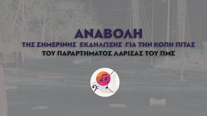 Η σημερινή εκδήλωση που προετοίμαζε το Παράρτημα Λάρισας του ΠΜΣ, σήμερα Δευτέρα 2/2/26 σε γνωστό χώρο εστίασης στο κέντρο της πόλης δεν θα πραγματοποιηθεί.