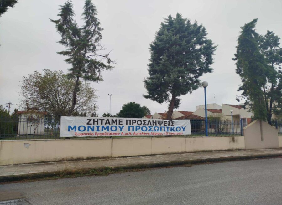 Στο Κέντρο Αριστέας στον Αμπελώνα, εδώ και καιρό, είναι αναρτημένο ένα πανό που στέλνει ένα σαφές και επίμονο μήνυμα: «Το Σωματείο Εργαζομένων ΑμεΑ Αμπελώνα Λάρισας “Ο Αριστεύς” ζητά προσλήψεις μόνιμου προσωπικού».
