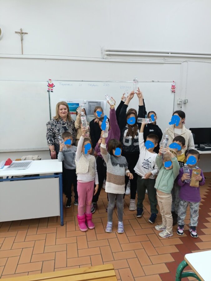 Στο τέλος της δράσης, μοιράστηκαν στους μαθητές εμφιαλωμένα νερά, προσφορά της κ. Βάσως Σαμαρίνα.