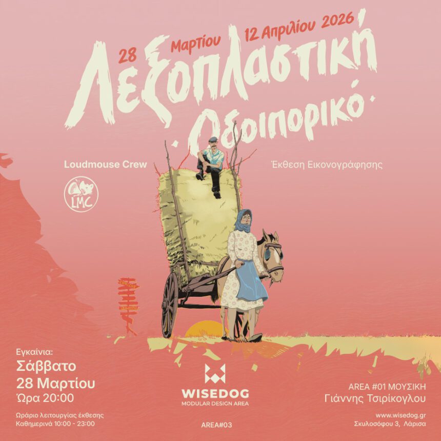 Το Wisedog παρουσιάζει την έκθεση εικονογράφησης «Λεξοπλαστική: Οδοιπορικό» και προσκαλεί το κοινό στα εγκαίνια που θα πραγματοποιηθούν το Σάββατο 28 Μαρτίου 2026 στις 20:00. Η έκθεση, από τους Νίκο Τσικούρα, Ελένη Κυρατζή και Θάνο Κυρατζή (Loudmouse Crew), θα διαρκέσει έως τις 12 Απριλίου και συγκεντρώνει περισσότερες από 100 πρωτότυπες εικονογραφήσεις εμπνευσμένες από λέξεις και ιδιώματα της Λάρισας, του Θεσσαλικού κάμπου και της Κρήτης, συνθέτοντας ένα εικαστικό οδοιπορικό ανάμεσα στη γλώσσα, τη μνήμη και την εικόνα.