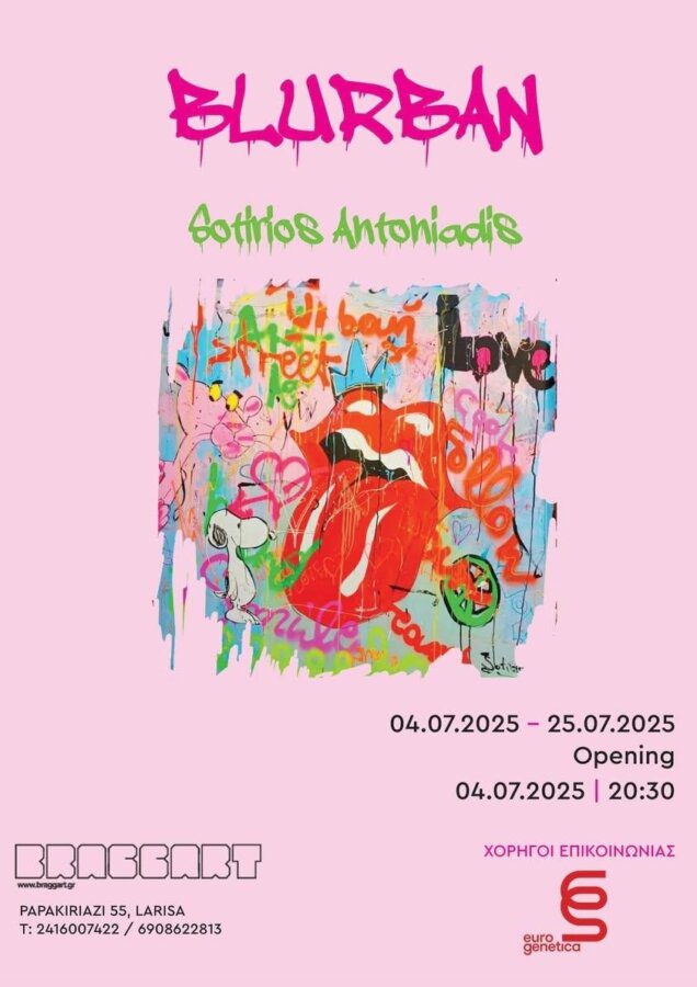 Η γκαλερί σύγχρονης τέχνης BRAGGART παρουσιάζει την ατομική έκθεση BLURBAN του εικαστικού Σωτήριου Αντωνιάδη/Sotirios Antoniadis από 04 έως 25 Ιουλίου 2025 στο art box Παπακυριαζή 55 & Σκαρλάτου Σούτσου στη Λάρισα. Τα εγκαίνια θα γίνουν Παρασκευή 04 Ιουλίου στις 20:30-22:30.