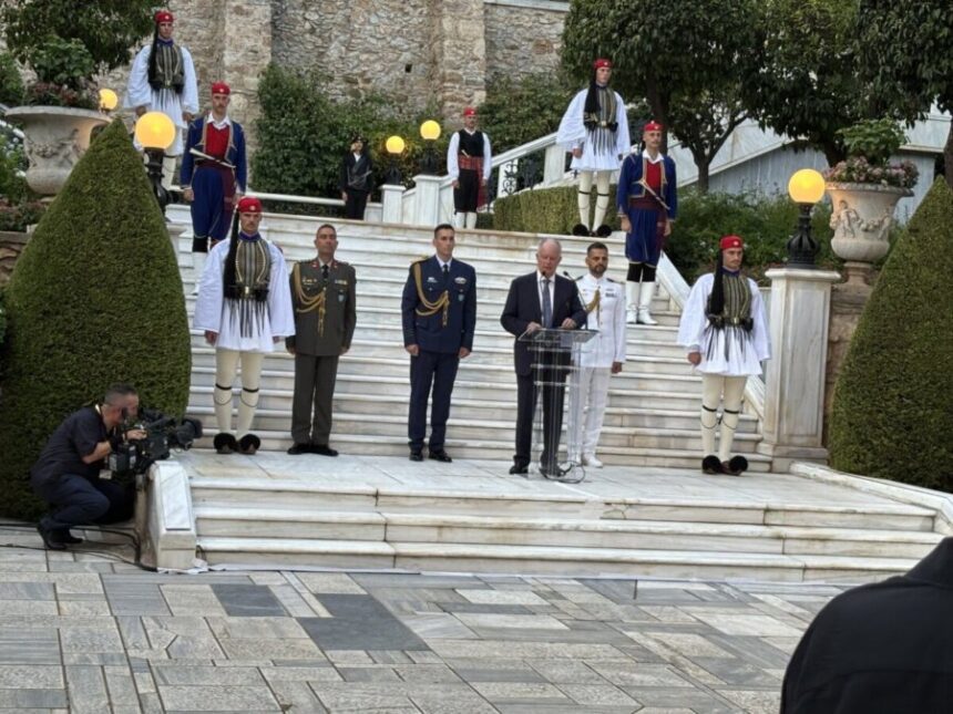 Στους κήπους του Προεδρικού Μεγάρου ο Πρόεδρος της Δημοκρατίας Κωνσταντίνος Τασούλας υποδέχεται, ως είθισται, τους περίπου 1.500 καλεσμένους, εκπροσώπους της πολιτικής, στρατιωτικής και θρησκευτικής ηγεσίας, καθώς και διακεκριμένες προσωπικότητές απ’ όλο το φάσμα της κοινωνίας.
