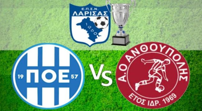 με πολλά τρεξίματα ,καλή κυκλοφορία της μπάλας και κάνοντας αρκετές ευκαιρίες για μεγαλύτερο σκορ ,πέρασε εύκολα στους “8” του κυπέλλου της ΕΠΣ Λάρισας κερδίζοντας εύκολα την ομάδα της Ανθούπολης.Τα γκολ σημείωσαν Κοντοθανάσης με απευθείας φάουλ στο 8′ λεπτο , με αυτογκόλ του Αντωνίου στο 25′ έγινε το 2-0 στο 35′ λεπτό μείωσε σε 2-1 ο Χατζής με κεφαλιά σε 2-1, που ήταν αποτέλεσμα του α ημίχρονου, στο 60′ μετά από φάουλ του Κοντοθανάση ο Αδάμος Κουκουλης με πολύ όμορφη και δυνατή κεφαλιά στη δεξιά γωνία έγραψε το 3-1 ,και το σκορ εκλεισε στο 77′ λεπτό μετά από σέντρα του Καμπερη ο Μπιωτης με πολύ καλή κεφαλιά έγραψε το 4-1 , σημαντική ευκαιρία στο 79′ για να σημειώσει το 5-1 έχασε ο Βασίλης Γκαμπετας αφού πέρασε την μπάλα