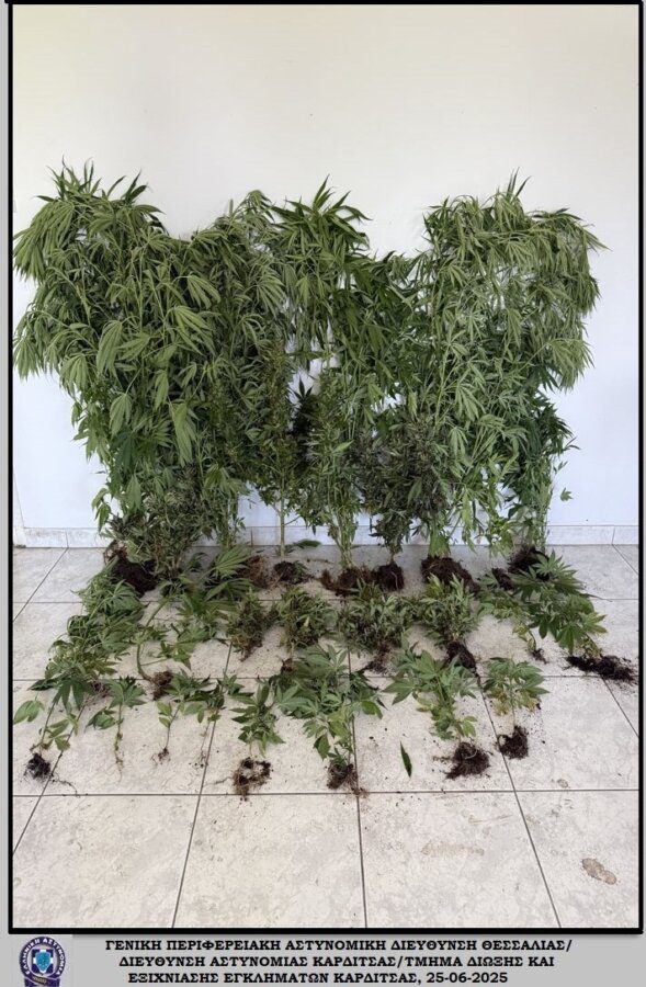 Ειδικότερα, σε νομότυπη έρευνα που διενεργήθηκε στην οικία του βρέθηκαν συνολικά -25- καλλιεργούμενα δενδρύλλια κάνναβης, ύψους από 0,34- έως -1,86- μέτρα, από τα οποία τα -15- σε θερμοκήπιο εντός του περιφραγμένου οικοπέδου της οικίας, τα -3- σε γλάστρες πλησίον του θερμοκηπίου και τα υπόλοιπα -7- σε ζαρντινιέρα (γλάστρα) μπαλκονιού.