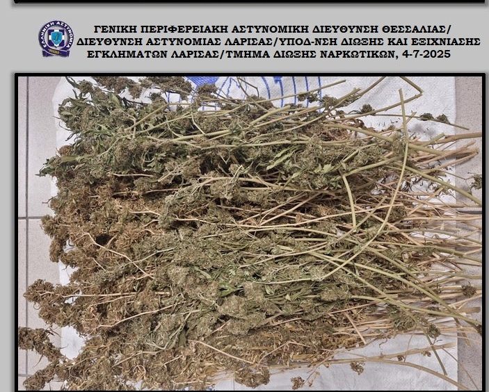 Ακολούθως, εντοπίστηκε ο ανωτέρω ημεδαπός στην πόλη της Λάρισας, για τον οποίο προέκυψε η εμπλοκή του στην καλλιέργεια δενδρυλλίων κάνναβης και ακινητοποιήθηκε, ενώ επιπλέον παρέδωσε ένα γυάλινο βάζο με ακατέργαστη κάνναβη, βάρους -13,6- γραμμαρίων και κατασχέθηκε.