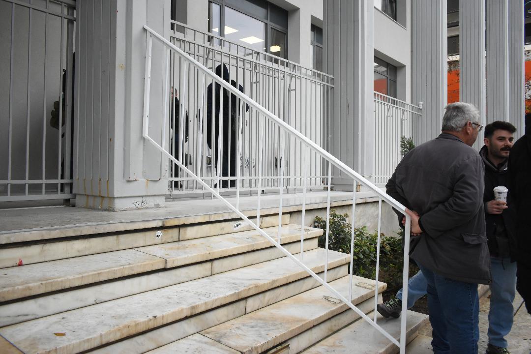 Οι εργασίες για την τοποθέτηση ειδικών αντιολισθητικών πλακιδίων στην είσοδο του κτιρίου έχουν ολοκληρωθεί, ενώ παράλληλα τοποθετήθηκαν κάγκελα στα σκαλιά του Δικαστικού Μεγάρου, προκειμένου να διευκολυνθεί η πρόσβαση στον χώρο.