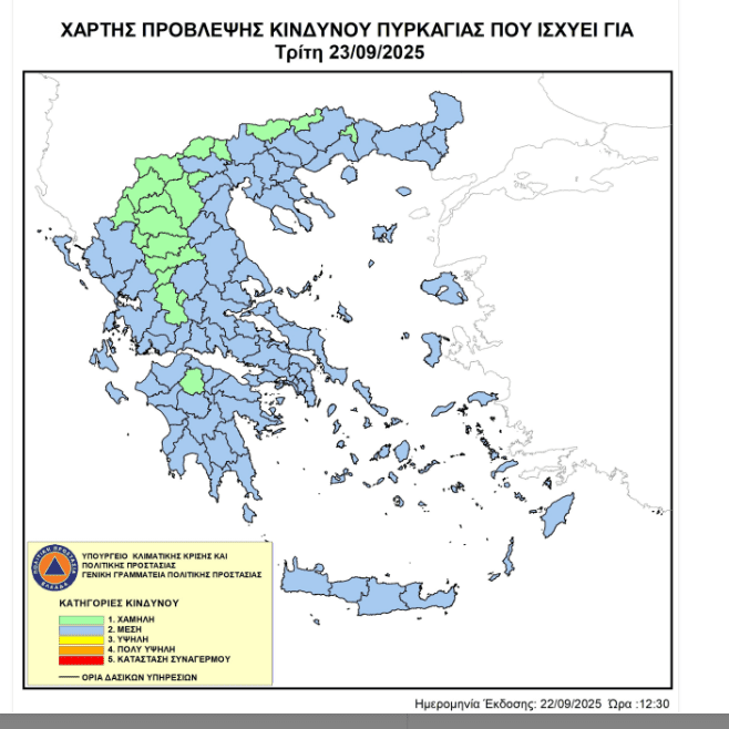 Στη δημοσιότητα δίνει η Περιφέρεια Θεσσαλίας τον Χάρτη Πρόβλεψης Κινδύνου Πυρκαγιάς για αύριο καθώς και την πρόγνωση του καιρού.