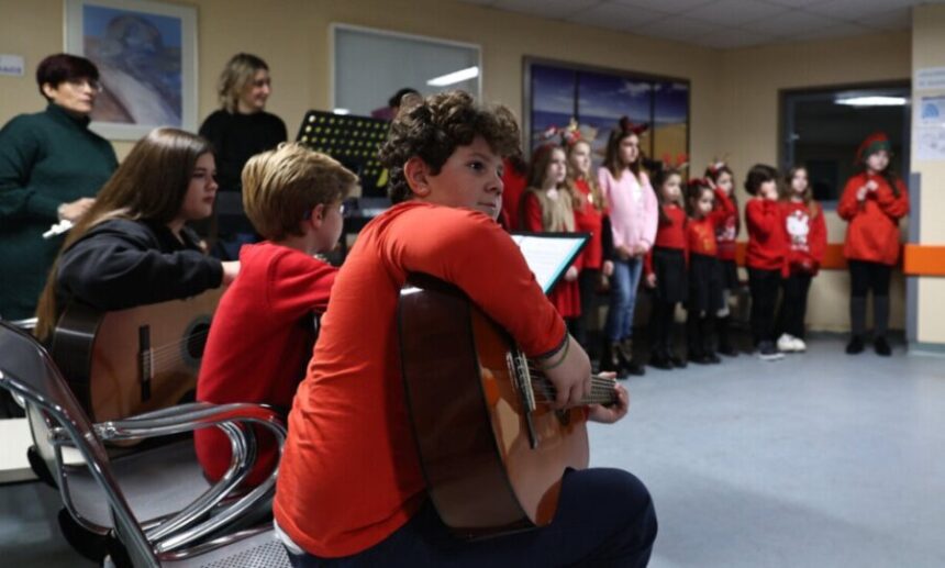Οι μαθητές της σχολής επισκέφτηκαν την παιδιατρική πτέρυγα του πανεπιστημιακού νοσοκομείου Λάρισας όπου τραγούδησαν και έπαιξαν χριστουγεννιάτικα κάλαντα και ευχήθηκαν στα παιδιά που νοσηλεύονται υγεία και γρήγορη ανάρρωση.