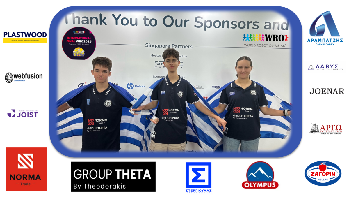 Ευχαριστίες απευθύνονται και στις εταιρείες που στήριξαν την ομάδα: NORMATRADE, GROUP By Theodorakis, ΕΛΛΗΝΙΚΑ ΓΑΛΑΚΤΟΚΟΜΕΙΑ, ΣΤΕΡΓΙΟΥΛΑΣ, ΑΡΑΜΠΑΤΖΗΣ C&C, ΖΑΓΟΡΙΝ, PLASTWOOD, WEBFUSION, JOIST, ΑΡΓΩ Εκπαιδευτική, ΛΑ.Β.Υ.Σ., JOENAR.