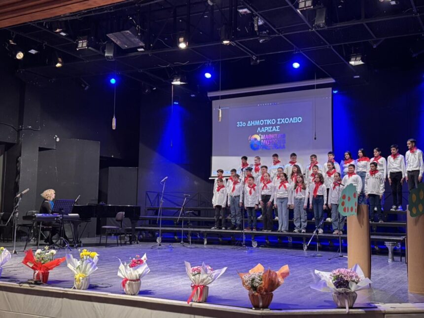Με μεγάλη επιτυχία η χορωδία του 33ου Δημοτικού Σχολείου Λάρισας συμμετείχε στο 8ο Μαθητικό Μουσικό Φεστιβάλ, που πραγματοποιήθηκε στις 17 και 18 Μαρτίου 2026 στο Δημοτικό Ωδείο Λάρισας με διοργάνωση της Διεύθυνσης Πρωτοβάθμιας Εκπαίδευσης Λάρισας, σε συνεργασία με την Ιερά Μητρόπολη Λαρίσης και Τυρνάβου και τον Δήμο Λαρισαίων. Το φετινό Φεστιβάλ είχε τίτλο: «Η Γη έχει Φωνή και τραγουδά με τα Παιδιά!» και αποτέλεσε μια μοναδική γιορτή για τη μαθητική μουσική δημιουργία.
