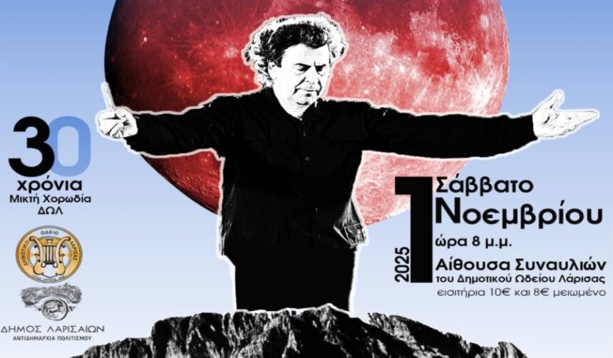 Μία ξεχωριστή συναυλία – αφιέρωμα στην επέτειο των 100 χρόνων από τη γέννησή του μεγάλου Έλληνα δημιουργού Μίκη Θεοδωράκη, με τίτλο “Η άλλη πλευρά του φεγγαριού”, διοργανώνουν η Αντιδημαρχία Πολιτισμού του Δήμου Λαρισαίων και το Δημοτικό Ωδείο Λάρισας. Η συναυλία, φόρος τιμής στη διαχρονική μουσική κληρονομιά ενός συνθέτη που με τη ζωή και το έργο του σημάδεψε την πολιτιστική ταυτότητα της Ελλάδας, θα πραγματοποιηθεί το Σάββατο 1η Νοεμβρίου 2025, στις 8:00 μ.μ., στην Αίθουσα Συναυλιών του Δημοτικού Ωδείου Λάρισας.