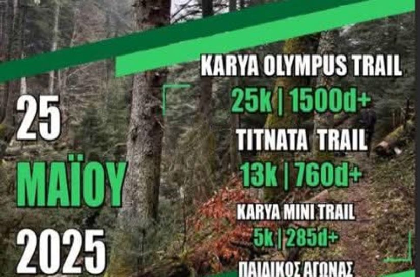 Με τη συμμετοχή εκατοντάδων αθλητών από όλη την Ελλάδα θα διεξαχθεί και φέτος ο 5ος Ορεινός Αγώνας «Karya Olympus Trail» την Κυριακή 25 Μαΐου στην ορεινή κοινότητα Καρυάς, στους πρόποδες του Ολύμπου.