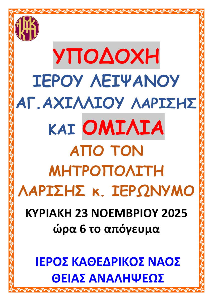 Συνεχίζονται την Κυριακή 23 Νοεμβρίου και ώρα 6μ.μ. τα Εσπερινά Κηρύγματα στον Ιερό Καθεδρικό Ναό Θείας Αναλήψεως Κατερίνης.