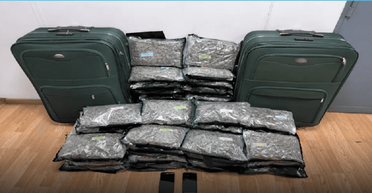 Από τον έλεγχο που πραγματοποιήθηκε στις αποσκευές της, κατελήφθη να έχει αποκρύψει, σε νάιλον συσκευασίες, 24 κιλά και 500 γραμμάρια ακατέργαστης κάνναβης υδροπονικής καλλιέργειας (skunk).