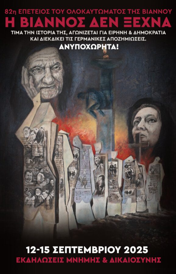 Με χαρά το Δ.Σ. του Συλλόγου αποδέχτηκε την πρόσκληση του Προέδρου της Ένωσης Θυμάτων Ολοκαυτώματος Δήμου Βιάννου, Αριστομένη Α. Συγγελάκη και του Πανεπιστημιακού και Συγγραμματέα του Εθνικού Συμβουλίου Διεκδίκησης των Οφειλών της Γερμανίας προς την Ελλάδα κ. Αριστομένη Συγγελάκη για τη συμμετοχή μελών του Προεδρείου στις εκδηλώσεις μνήμης για το Ολοκαύτωμα πάνω από 20 χωριών της Βιάννου και της Δυτικής Ιεράπετρας. Οι εκδηλώσεις ξεκινούν την Παρασκευή 12 Σεπτεμβρίου 2025 και θα ολοκληρωθούν την Δευτέρα 15-9-2025, στο Ηράκλειο Κρήτης με τη μεγάλη Συναυλία Μνήμης και Δικαιοσύνης, στο Κηποθέατρο Νίκος Καζαντζάκης. Το ολοκαύτωμα της Βιάννου θεωρείται το δεύτερο μεγαλύτερο της Ελλάδας μετά αυτό των Καλαβρύτων.