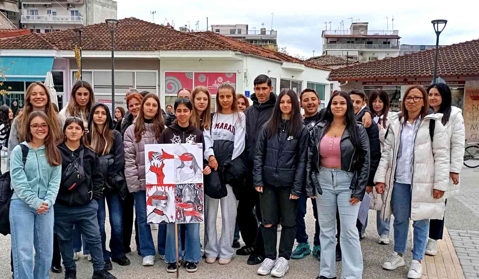 Μαθητές του ΕΠΑΛ Τυρνάβου, σε συνεργασία για δεύτερη συνεχή χρονιά με το Κέντρο Κοινότητας του Δήμου Τυρνάβου, στο πλαίσιο της δράσης – κοινωνικής ένταξης των μαθητών στο Δίκτυο Πρόληψης και Προαγωγής Ψυχοκοινωνικής Υγείας, συμμετείχαν στην Μουσική Πορεία με τίτλο: «Οι φωνές μας, η δύναμή σου», για τη Διεθνή Ημέρα για την εξάλειψη της βίας κατά των γυναικών.