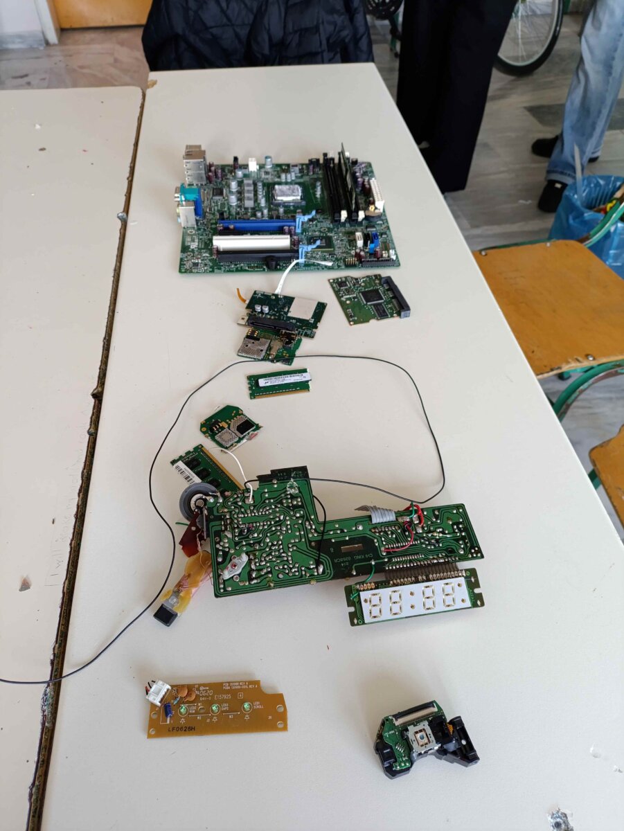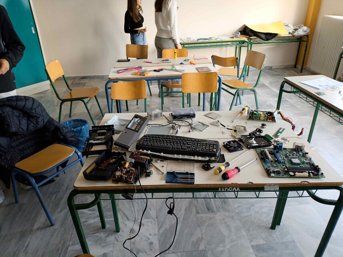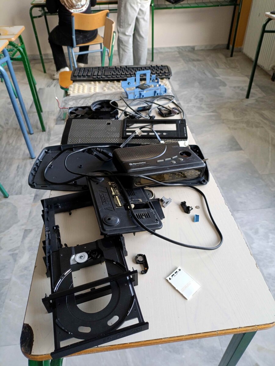 Οι μαθητές αποσυναρμολόγησαν διάφορες συσκευές, εξερεύνησαν το εσωτερικό τους, αναγνώρισαν υλικά, εξαρτήματα και επιμέρους κατασκευές, και κατέγραψαν αναλυτικά τα ευρήματά τους. Η διαδικασία τους βοήθησε να κατανοήσουν καλύτερα πώς λειτουργούν οι συσκευές, αλλά και πώς μπορούν να αξιοποιηθούν τα υλικά τους μέσα από υπεύθυνες πρακτικές ανακύκλωσης.
