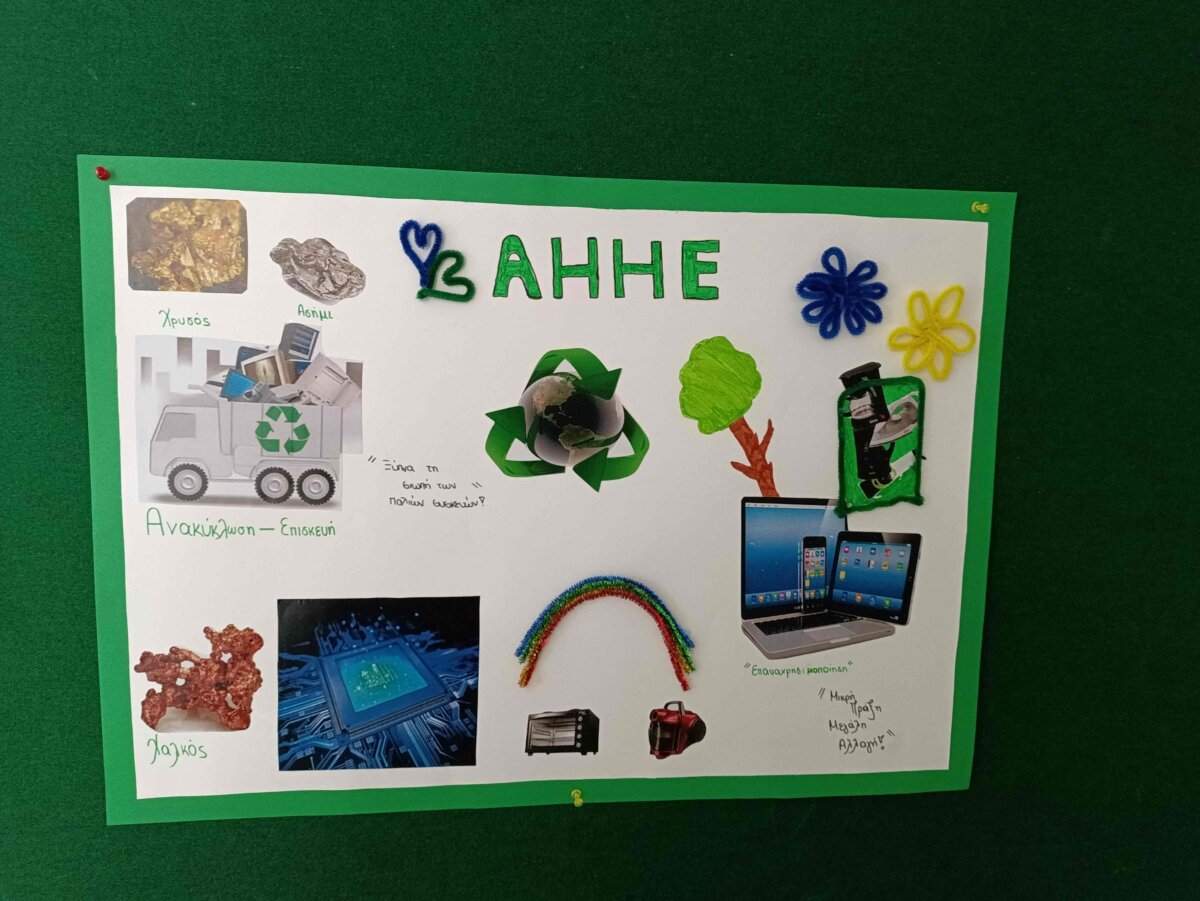 Με βάση τις πληροφορίες και τις παρατηρήσεις που συγκέντρωσαν, οι μαθητές δημιούργησαν μια αφίσα–κολάζ, η οποία συνδυάζει φωτογραφικό υλικό, λεζάντες και ενημερωτικά στοιχεία. Στόχος της αφίσας είναι να ενημερώσει και να ευαισθητοποιήσει τους υπόλοιπους μαθητές και τους εκπαιδευτικούς του σχολείου για τη σημασία της ορθής διαχείρισης του ηλεκτρικού και ηλεκτρονικού εξοπλισμού, αλλά και για τις δυνατότητες που προσφέρει η ανακύκλωση.