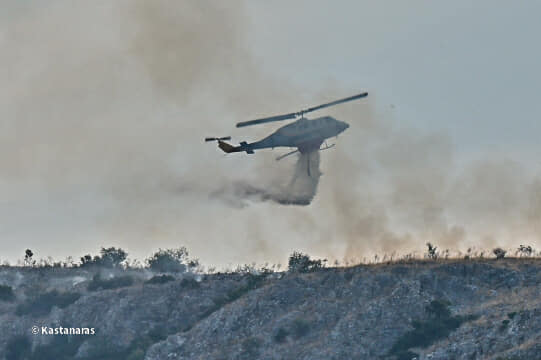 Παράλληλα υπήρξε και εναέρια υποστήριξη με τέσσερα αεροσκάφη και τρία ελικόπτερα για να συνδράμουν στην κατάσβεση.