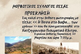 Σήμερα στο Χατζηγιάννειο Πνευματικό Κέντρο Λάρισας η Έκθεση φωτογραφίας «Η Όσσα στο διάβα… των χρόνων»