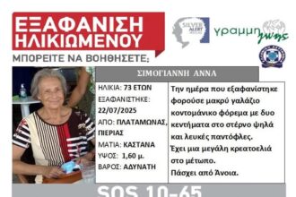 Συναγερμός σήμανε στις αρχές για την εξαφάνιση της 73χρονης Άννας Σιμογιάννη,…