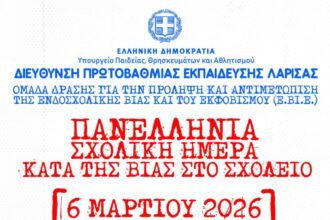 Δράση της Δ.Π.Ε. Λάρισας για την Πανελλήνια Σχολική Ημέρα κατά της Βίας στο Σχολείο