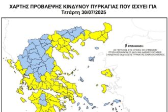 Πολύ Υψηλός (κατηγορία κινδύνου 4) ο κίνδυνος πυρκαγιάς στην ΠΕ Μαγνησίας τη Δευτέρα