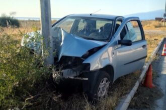 Όχημα «καρφώθηκε» σε κολόνα στα παράλια της Λάρισας (φωτο)