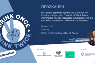 Λάρισα: Δράση για την κατανάλωση αλκοόλ και τη συμμετοχή των νέων στον κοινωνικό διάλογο