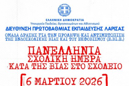 Λάρισα: Μαθητική εκδήλωση με τίτλο: Όλοι μαζί μια αγκαλιά, λέμε στη βία “μακριά”»