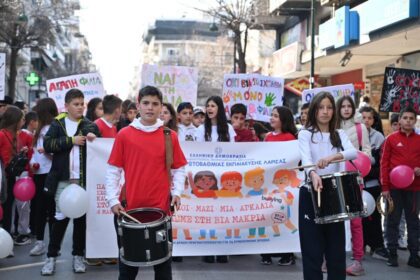 «Όλοι μαζί μια αγκαλιά» – Ηχηρό μήνυμα μαθητών της Λάρισας κατά της σχολικής βίας