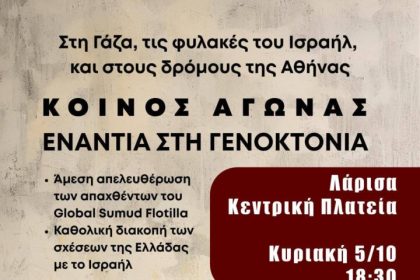 Συγκέντρωση αλληλεγγύης από την Αντιπολεμική Κίνηση Λάρισας